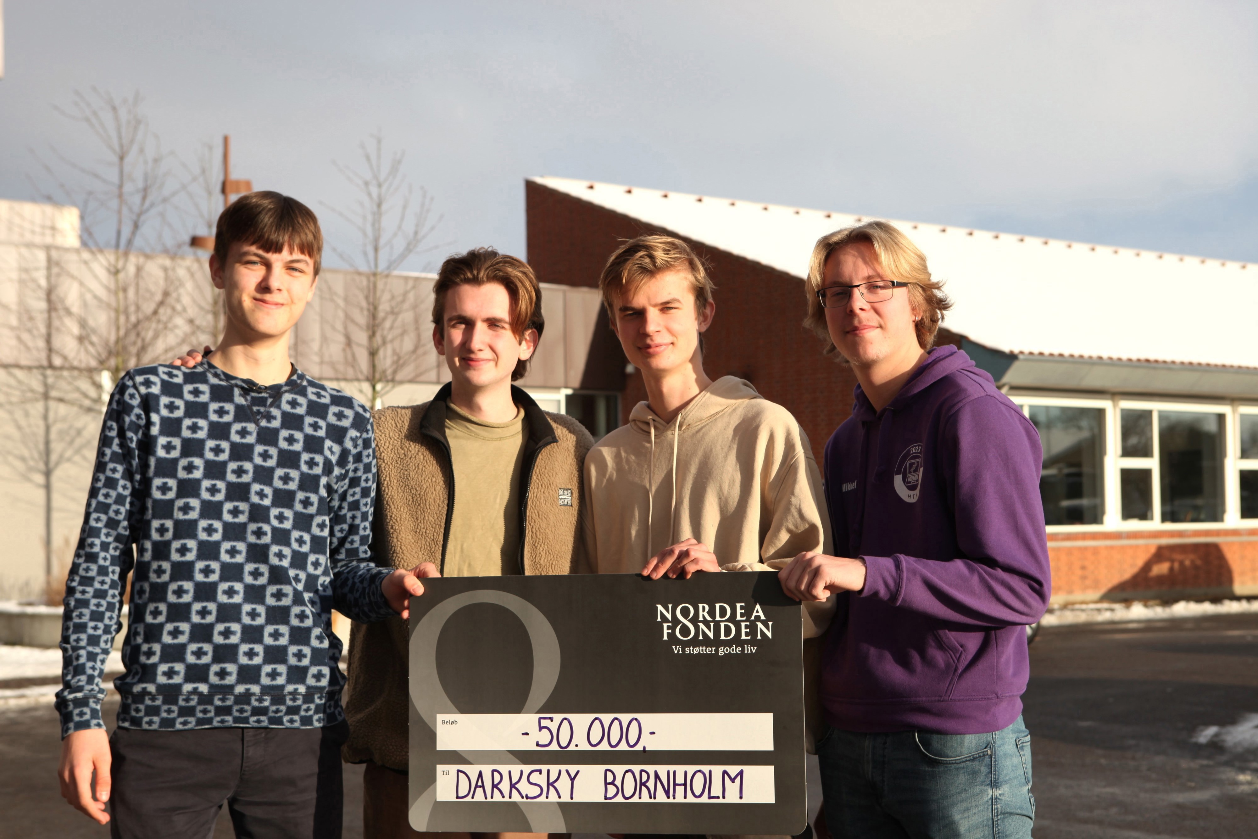 Her til formiddag mødtes initiativtagerne bag den nystiftede astronomiforening Darksky Bornholm med filialdirektør i Nordea, Morten Hjorth Hansen, til den officielle overrækkelse af i alt 50.000 kr., som foreningen har modtaget i donation til indkøb af bl.a. teleskop og software.